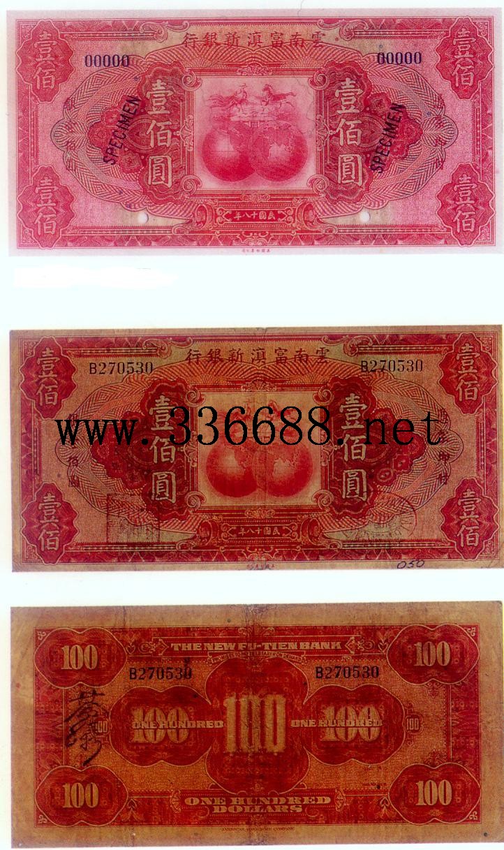 [图文]云南富滇新银行民国18年(1929)银元券   100元         ★★★
