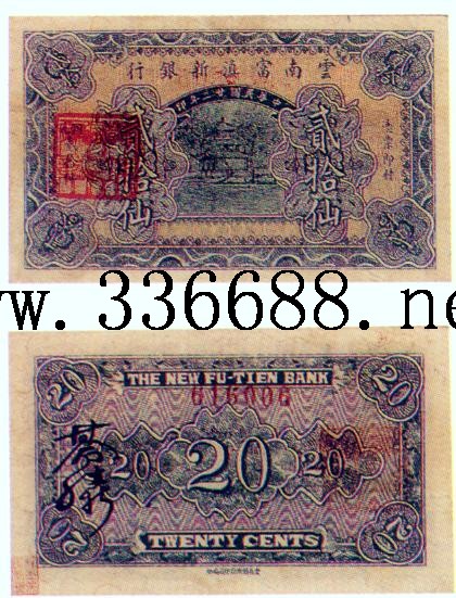 [图文]云南富滇新银行民国22年(1933)铜元券   20仙         ★★★