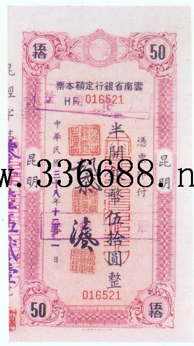 [图文]云南省银行民国38年(1949)定额本票  50元         ★★★