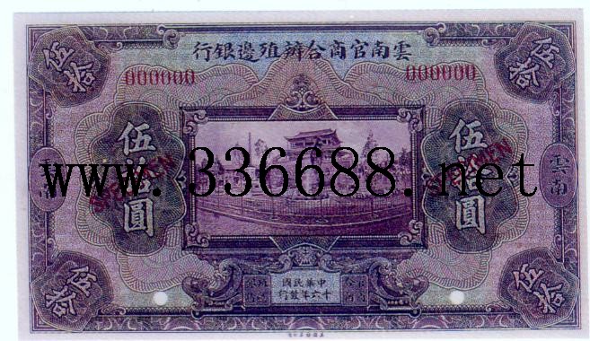 [图文]云南官商合办殖边银行民国16年(1927)  50元         ★★★