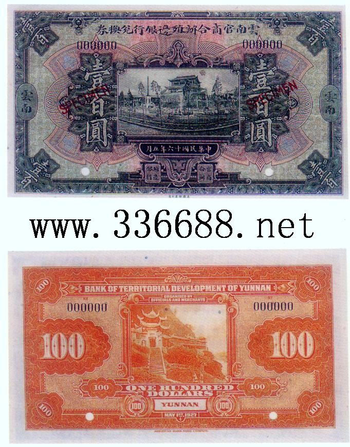 [图文]云南官商合办殖边银行民国16年(1927)  100元         ★★★