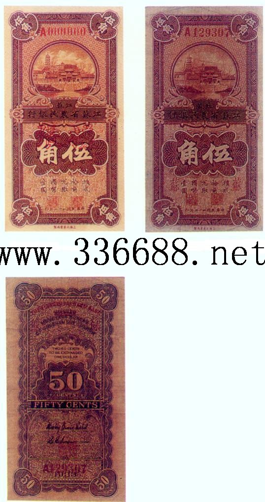 [图文]江苏省农民银行民国22年(1933)银元券   5角         ★★★