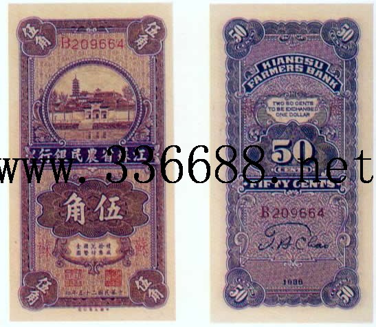 [组图]江苏省农民银行民国25年(1936)银元券   5角         ★★★