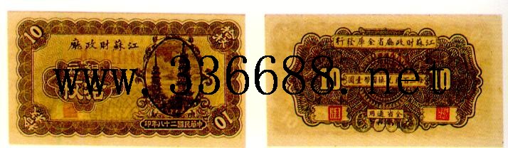 [图文]江苏省农民银行民国28年(1939)财政厅铜元券   10枚         ★★★