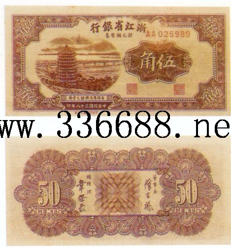 [图文]浙江省银行民国38年(1949)银元券   5角         ★★★