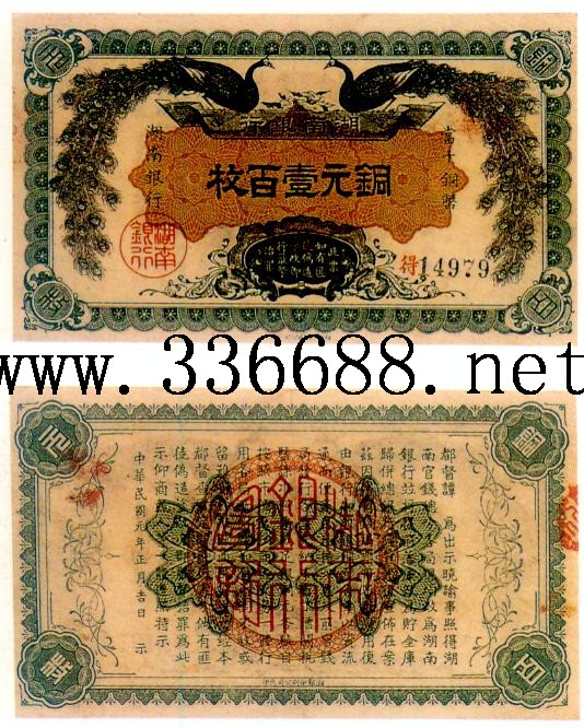 [图文]湖南银行民国元年(1912)铜元票   100枚         ★★★