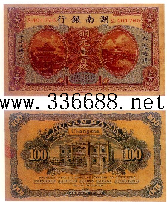 [图文]湖南银行民国6年(1917)铜元票   100枚         ★★★