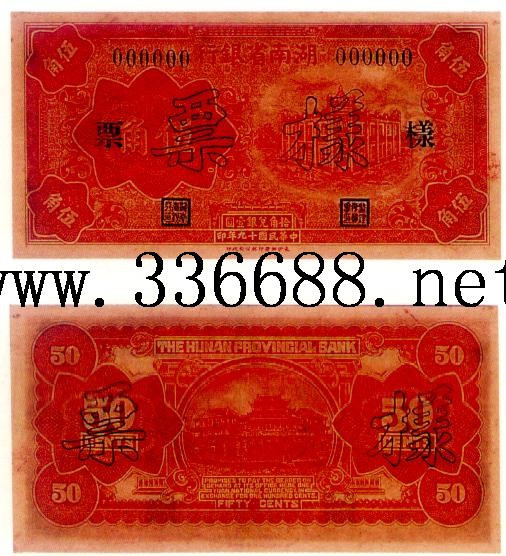 [图文]湖南省银行民国19年(1930)银元票   5角         ★★★