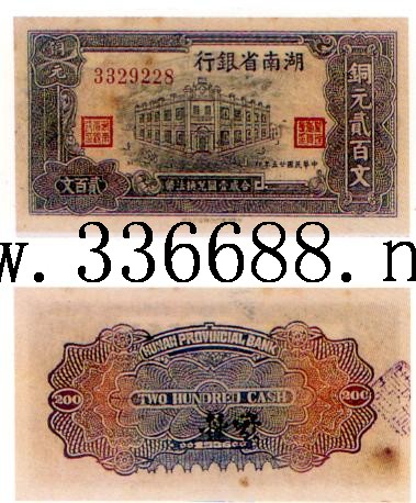 [图文]湖南省银行民国25年(1936)铜元票   200文         ★★★