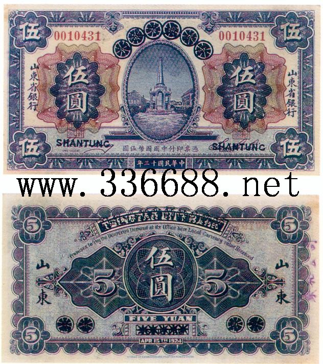 [图文]山东省银行民国13年(1924)银元券   5元         ★★★