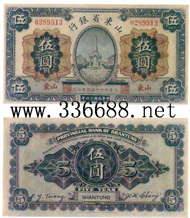 [图文]山东省银行民国14年(1925)银元券   5元         ★★★