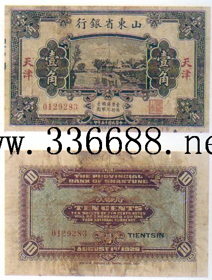 [图文]山东省银行民国15年(1926)银元券   1角         ★★★
