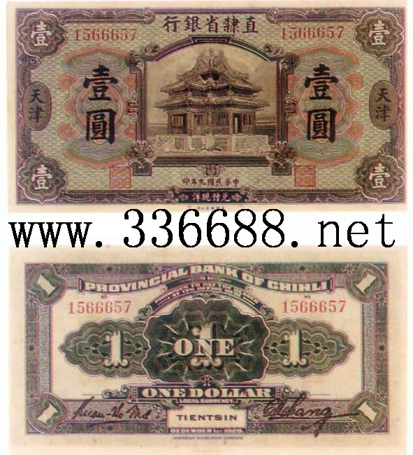 [组图]直隶省银行民国9年(1920)银元票   1元         ★★★