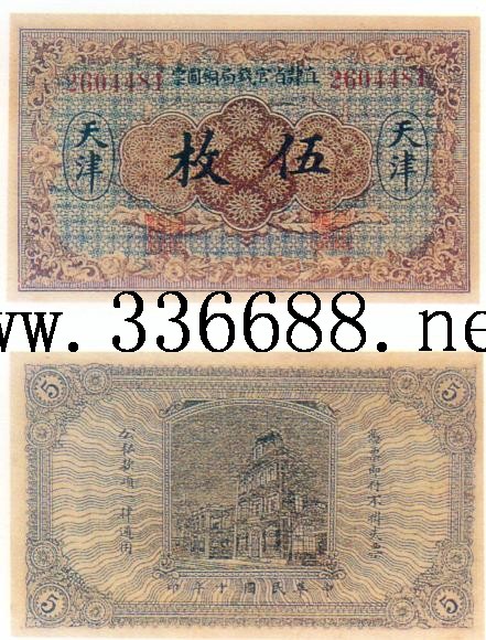 [图文]直隶省银行民国10年(1920)铜元票   5枚         ★★★