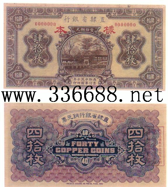 [图文]直隶省银行民国14年(1925)铜元票   40枚         ★★★