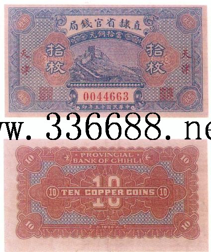[图文]直隶省银行民国15年(1926)铜元票   10枚         ★★★