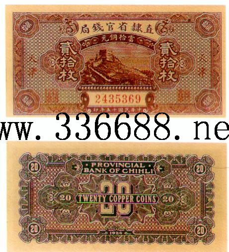[图文]直隶省银行民国15年(1926)铜元票   20枚         ★★★