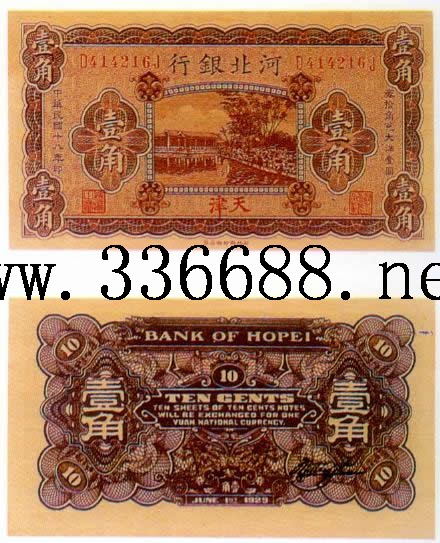 [组图]河北省银行民国18年(1929)银元票   1角         ★★★