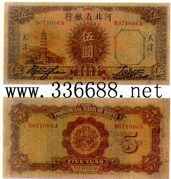 [图文]河北省银行民国22年(1933)银元票   5元         ★★★
