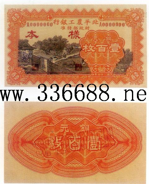 [图文]北平农工银行民国24年(1935)铜元券   100枚         ★★★