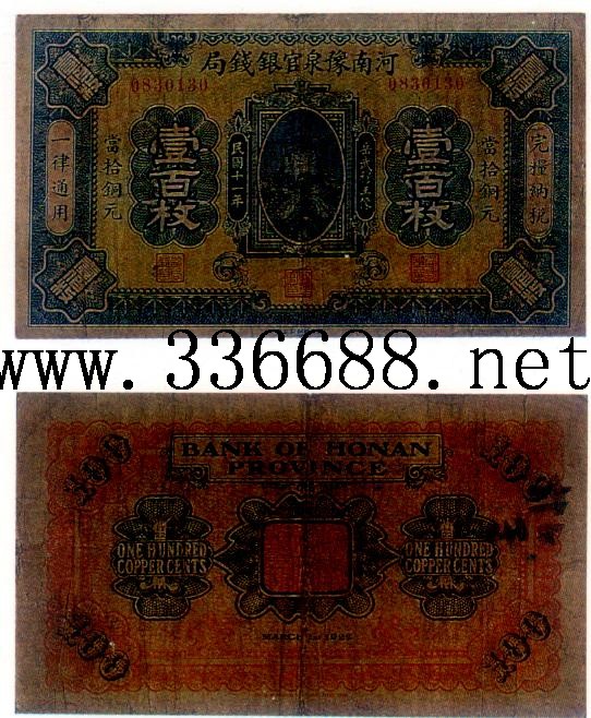 [图文]河南豫泉官银钱局民国11年(1922)铜元券   100枚         ★★★