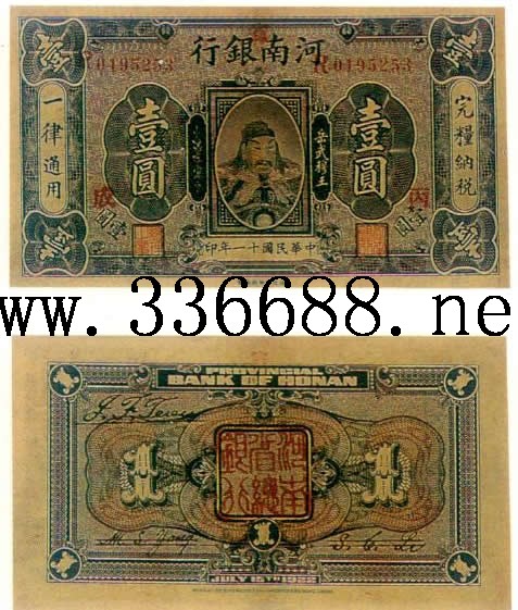 [组图]河南省银行民国11年(1922)银元券  1元         ★★★