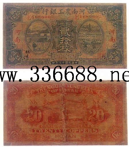 [图文]河南省农工银行民国17年(1928)铜元券   20枚         ★★★