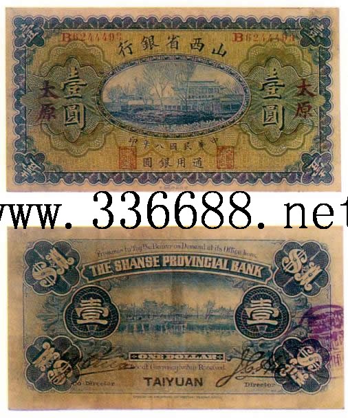 [组图]山西省银行民国8年(1919)银元票   1元         ★★★