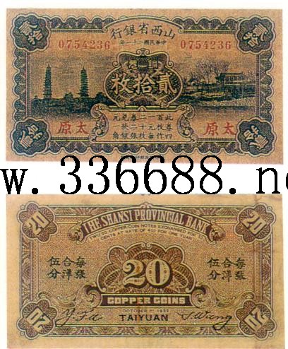[图文]山西省银行民国21年(1932)铜元票   20枚         ★★★
