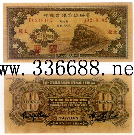 [图文]晋绥地方铁路银号民国23年(1934)   1角         ★★★