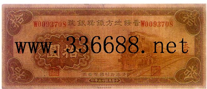 [图文]晋绥地方铁路银号民国23年(1934)   10元         ★★★