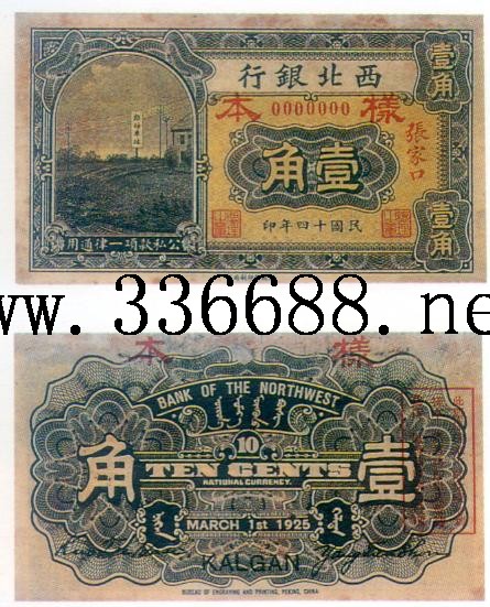 [图文]西北银行民国14年(1925)银元券   1角         ★★★