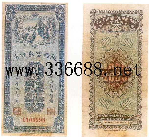[图文]陕西富秦钱局民国12年(1923)制钱票   1000文         ★★★
