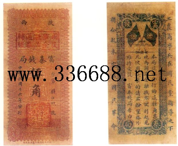 [图文]陕西富秦钱局民国16年(1927)银角票   5角         ★★★
