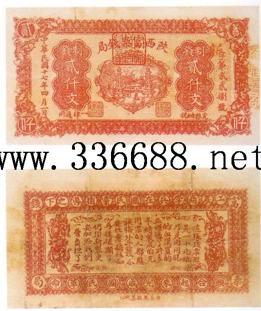 [图文]陕西富秦钱局民国17年(1928)制钱票   2000文         ★★★