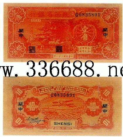 [图文]陕西省银行民国21年(1932)银元票   1角         ★★★