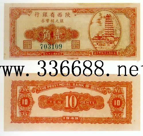 [图文]陕西省银行民国38年(1949)银元辅币券   1角         ★★★
