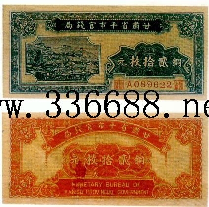 [图文]甘肃平市官钱局民国无年份(ND)铜元券   20枚         ★★★