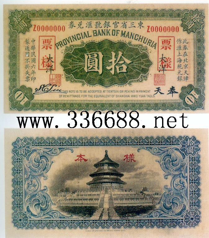 [图文]东三省官银号民国6年(1917)匯兑大洋券   10元         ★★★