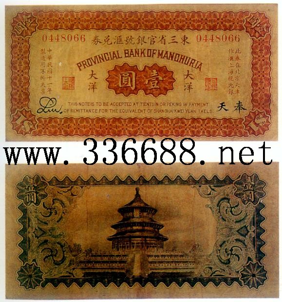 [图文]东三省官银号民国11年(1922)匯兑大洋券   1元         ★★★