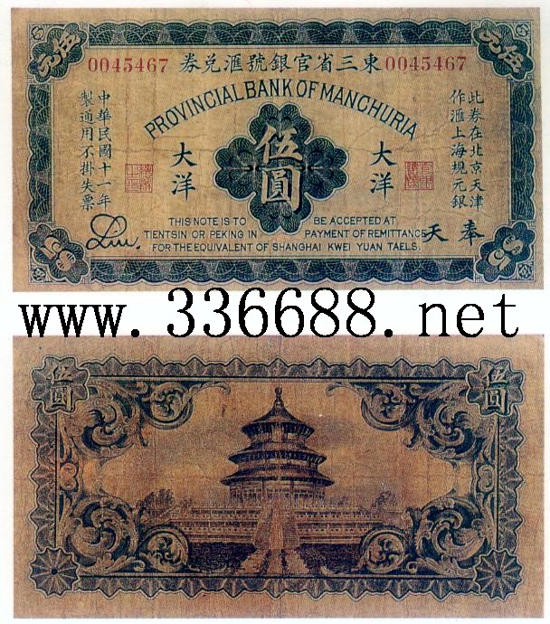 [图文]东三省官银号民国11年(1922)匯兑大洋券   5元         ★★★