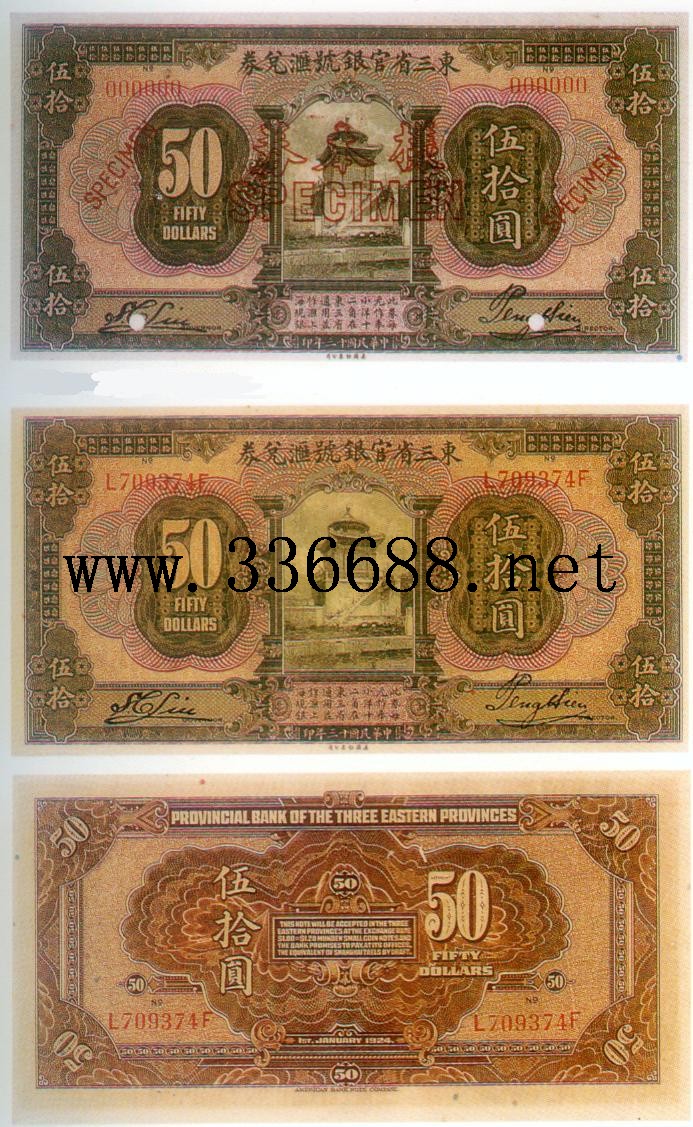 [图文]东三省官银号民国13年(1924)匯兑大洋券   50元         ★★★