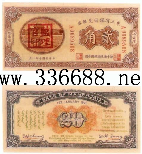 [图文]东三省银行民国10年(1921)哈大洋券   2角         ★★★