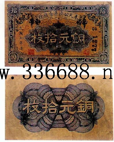 [图文]奉天公济平市钱号民国7年(1918)铜元票   10枚         ★★★