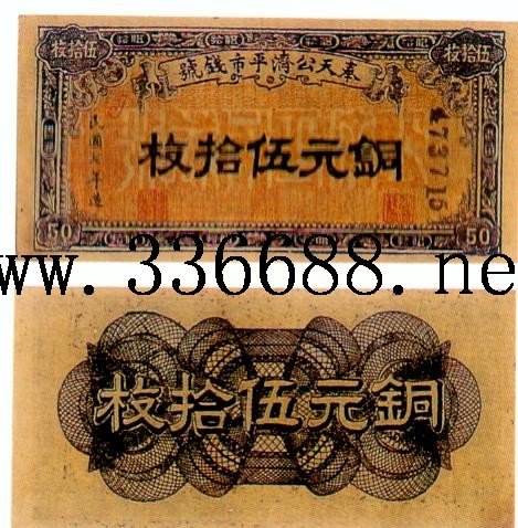 [图文]奉天公济平市钱号民国7年(1918)铜元票   50枚         ★★★