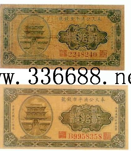 [组图]奉天公济平市钱号民国11年(1922)铜元票   20枚         ★★★