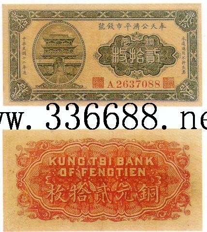 [图文]奉天公济平市钱号民国12年(1923)铜元票   20枚         ★★★