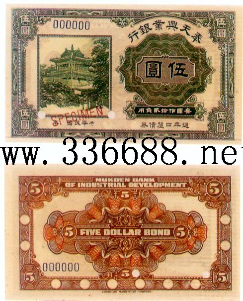 [图文]奉天兴业银行民国7-12年(1918-23)银元券   5元         ★★★