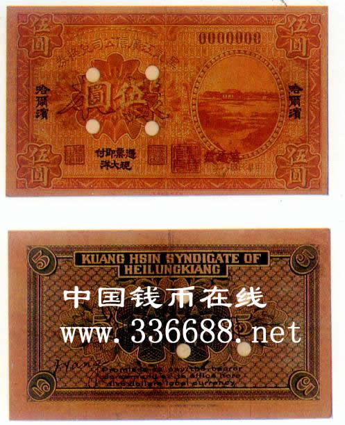[图文]黑龙江广信公司民国8年(1919)匯兑券   5元未发行         ★★★