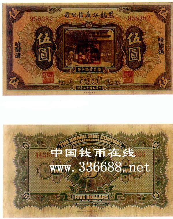 [组图]黑龙江广信公司民国13年(1924)大洋券   5元         ★★★